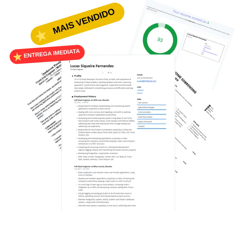 Projetos, tecnologias, métricas e resultados apresentados do jeito que recrutadores realmente querem ver.